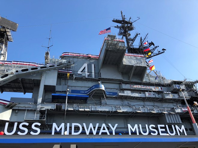- Tàu sân bay USS Midway - có hải trình phục vụ 47 năm, là mẫu hạm phục vụ lâu nhất của quân đội Mỹ trong thế kỷ 20, từ cuối chiến tranh TG II cho đến cuộc chiến giải phóng Kuwait 1991, trước khi "về hưu" vào năm 1992 (tham quan chụp hình bên ngoài).