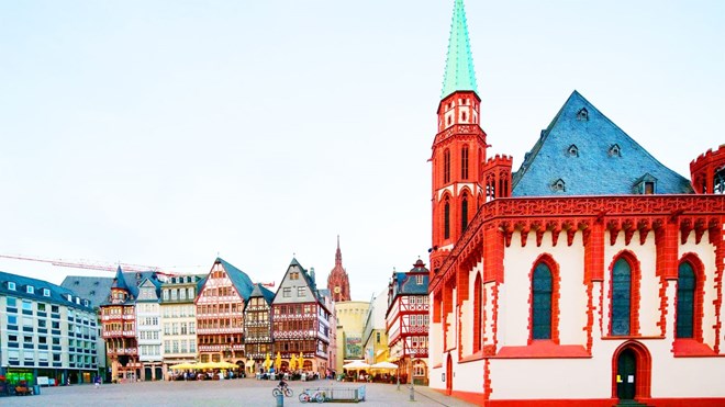 - Romerberg Square - quảng trường trung tâm của Frankfurt, nơi tụ họp của dân địa phương trong các lễ hội đặc biệt là lễ giáng sinh. Khu vực này nổi bật với 11 tòa nhà cũ được xây dựng từ thế kỷ 15 – thế kỷ 18 bao gồm Old Town Hall với Imperial Hall tạo nên một không gian lộng lẫy.