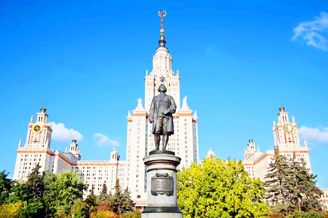 - Thăm quan bên ngoài Trường Đại học MGU- mang tên Lomonosov: là trường đại học tổng hợp đầu tiên của nước Nga, cũng là nơi đào tạo cho nước Nga nhiều nhà khoa học nổi tiếng trong nhiều chuyên ngành khác nhau. Tòa nhà này đặc trưng cho kiến trúc thời kỳ Stalin và chi phí xây dựng nó còn nhiều hơn cả chi phí khôi phục thành phố Volgograd sau chiến tranh thế giới lần thứ II. Chụp ảnh Check-in tại Đồi Chim sẻ.