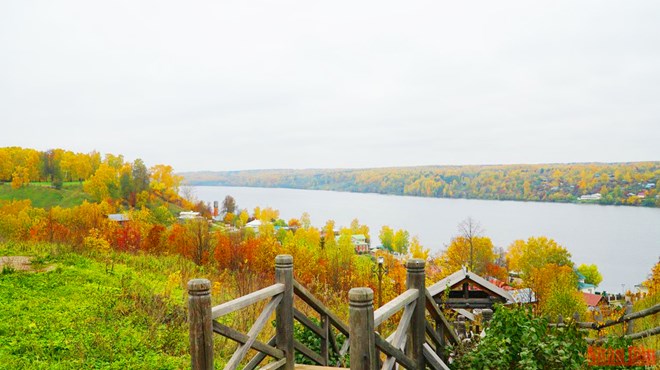 13:30 Khám phá thành phố Thu vàng PLYOS trong các tác phẩm nối tiếng của đại danh hoạ thế giới Isaac Levitan Ngắm toàn cảnh trị trấn Plyos thơ mộng từ Đồi Nhà thờ Dạo chơi trên phố trung tâm Plyos bên bờ sông Volga. Plyos là một thị trấn nhỏ nằm bên bờ sông Volga, thuộc tỉnh Ivanovo, Nga. Với vẻ đẹp thiên nhiên thơ mộng và kiến trúc cổ kính, Plyos đã trở thành điểm đến hấp dẫn cho những ai yêu thích nghệ thuật và thiên nhiên. Thị trấn này còn đặc biệt nổi tiếng là nơi danh họa Isaac Levitan sáng tác những bức tranh về mùa thu vàng nổi tiếng thế giới. 15:00-16:00 Đi Du thuyền trên sông Volga dòng sông dài nhất châu Âu - Volga và ngắm nhìn cảnh đẹp cổ kính thơ mộng hai bên bờ sông ở thị trần Plyos sẽ là một trải nghiệm tuyền vời, đặc biệt là vào mùa thu với màu vàng rực rỡ.