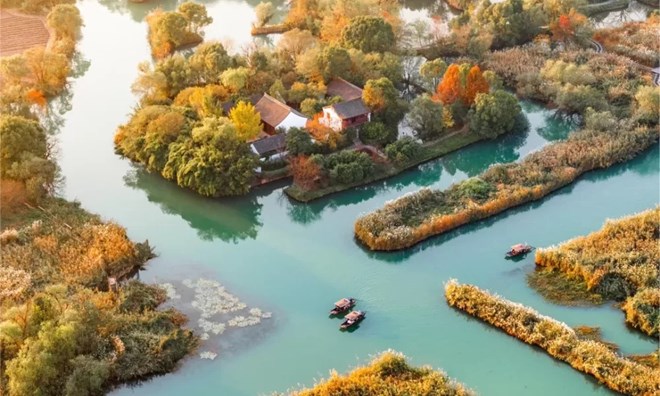 - Công viên đầm lầy Thái Hồ là khu sinh thái rộng lớn, bao quanh bởi hồ nước và thảm thực vật phong phú. Đây là điểm đến lý tưởng để du khách dạo chơi, ngắm cảnh tự nhiên trong lành và tìm hiểu hệ sinh thái đặc trưng của vùng Thái Hồ.